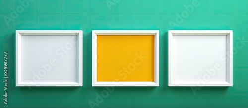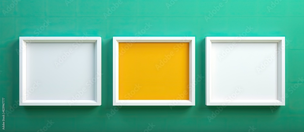 Wall mural a copy space image of an empty white frame is set against a vibrant green and yellow background