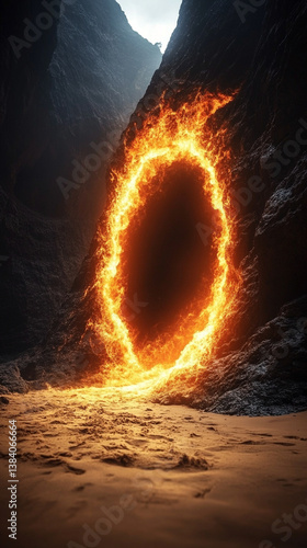The watermark will not be included on Wall mural.: A cosmic abstract background symbolizing the infinite universe with a glowing portal - it represents