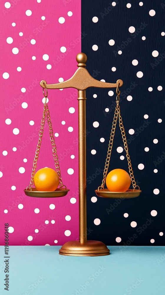 The watermark will not be included on Wall mural.: A cosmic balance scale with golden planets resting on its arms set against a vast starry background