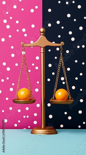 Wall mural a cosmic balance scale with golden planets resting on its arms set against a vast starry background  - Wall murals Wall mural a cosmic balance scale with golden planets resting on its arms set against a vast starry background - Wall murals