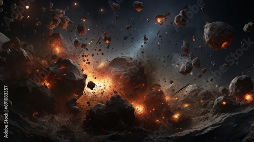 Wall mural a cosmic collision between asteroids, capturing the explosive impact and resulting celestial debris