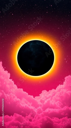 Wall mural a cosmic eclipse with golden edges glowing softly surrounded by swirling nebula clouds and a field o