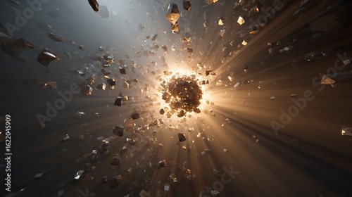 Wall mural : A cosmic explosion of asteroids and light in the vastness of space, creating an abstract and visuall