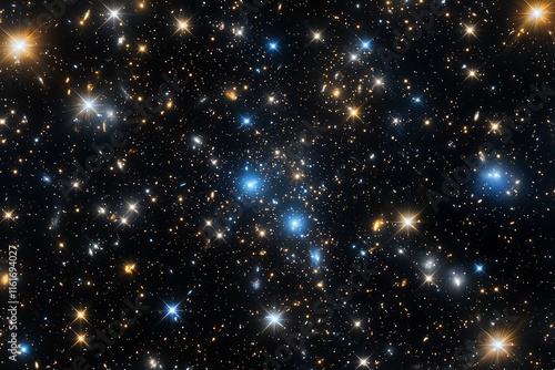 Wall mural : A cosmic void with endless energy streams and distant star clusters in motion -