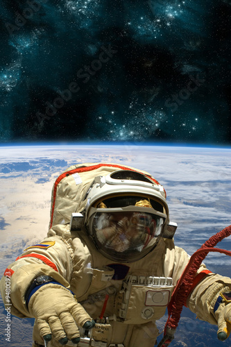 Wall mural a cosmonaut floats in space. - elements of this image furnished by nasa. - Wall murals Wall mural a cosmonaut floats in space. - elements of this image furnished by nasa. - Wall murals