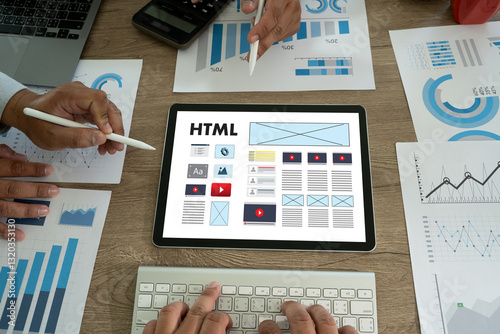 The watermark will not be included on Wall mural.: A creative person works on web design to build responsive websites and digital applications - website