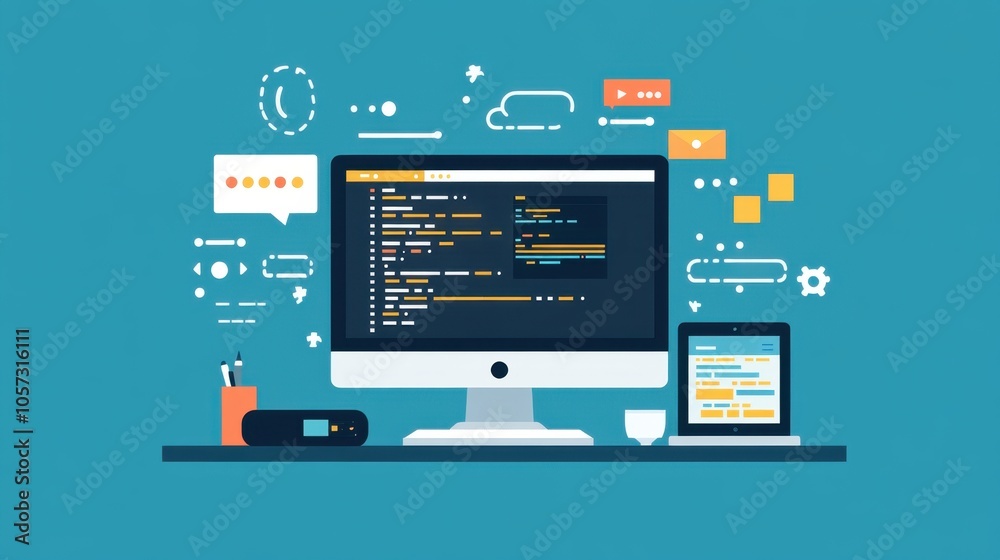 Wall mural a creative workspace displaying a web developer using creative cloud software, emphasizing a profess - Wall murals Wall mural a creative workspace displaying a web developer using creative cloud software, emphasizing a profess - Wall murals