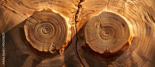 The watermark will not be included on Wall mural.: A cross section of wood displays two brown circular patterns against a copy space image