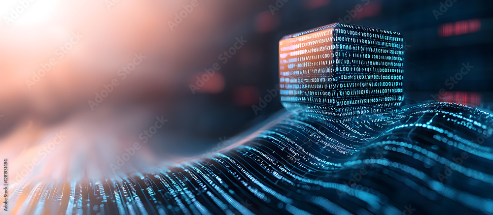 Wall mural : A cube with a bunch of numbers on it is on a blue background
