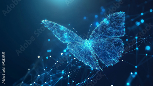 Wall mural : A cutting-edge vector illustration depicting an abstract butterfly in flight over a network of linke