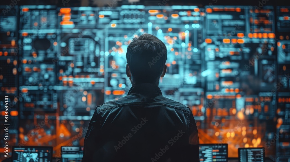 Wall mural a cyber security featuring a guard in an it environment. generative ai. - Wall murals Wall mural a cyber security featuring a guard in an it environment. generative ai. - Wall murals