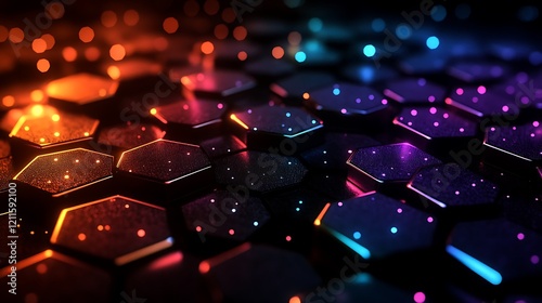 The watermark will not be included on Wall mural.: A dark background with an abstract grid of glowing hexagon