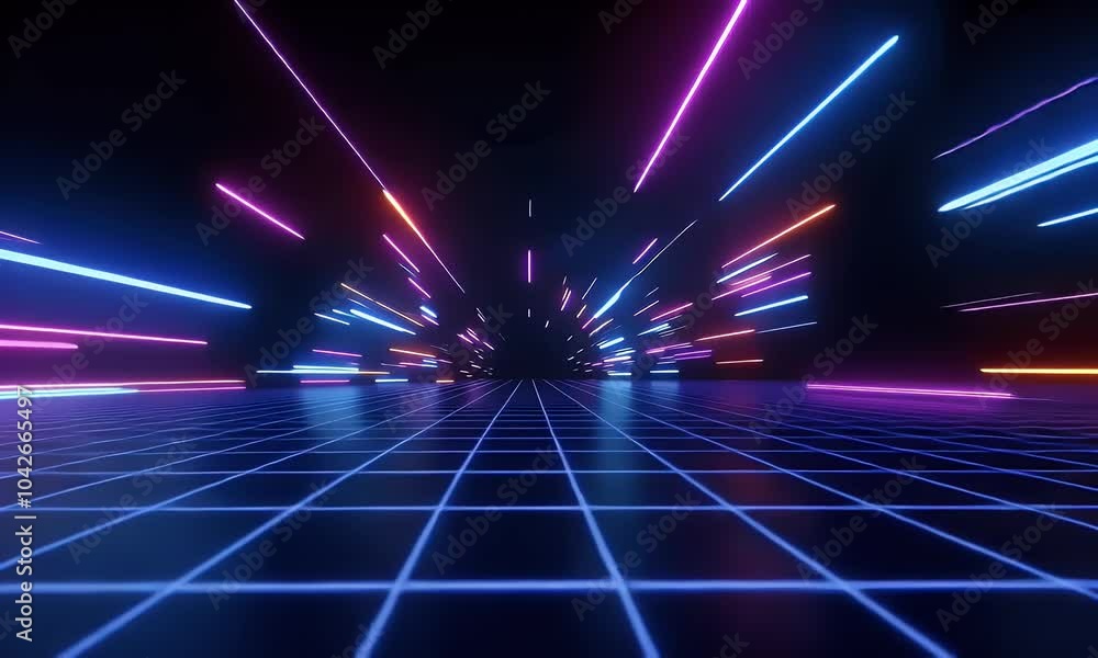 The watermark will not be included on Wall mural.: A dark background with neon lights and laser beams, creating an atmosphere of futuristic technology