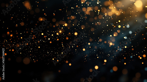 Wall mural : A dark black background with particles or elements randomly drifting in space -