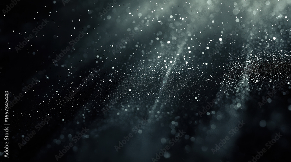 Wall mural : A dark black background with particles or elements randomly drifting in space -