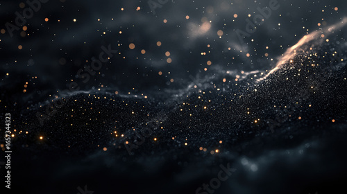 Wall mural : A dark black background with particles or elements randomly drifting in space -