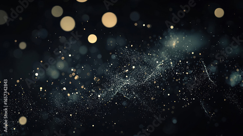 Wall mural : A dark black background with particles or elements randomly drifting in space -
