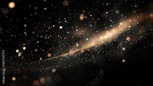 Wall mural : A dark black background with particles or elements randomly drifting in space -