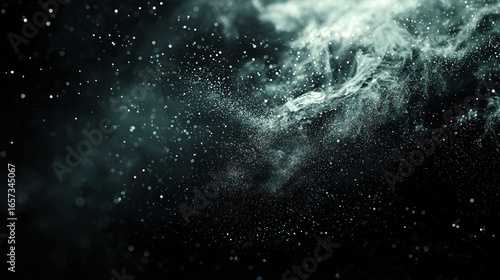 The watermark will not be included on Wall mural.: A dark black background with particles or elements randomly drifting in space -