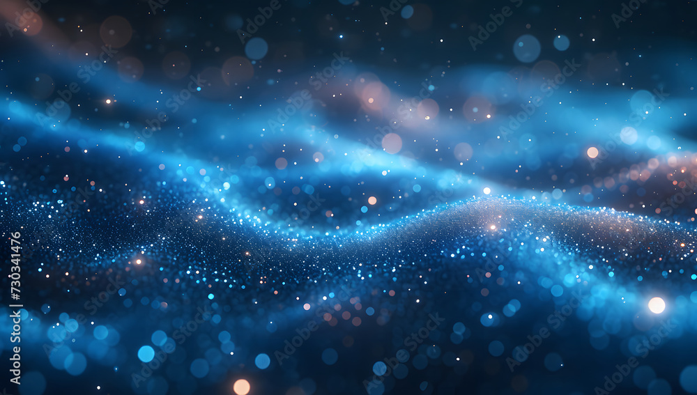 The watermark will not be included on Wall mural.: A dark blue abstract background featuring a glow particle effect - the image includes abstract blue l
