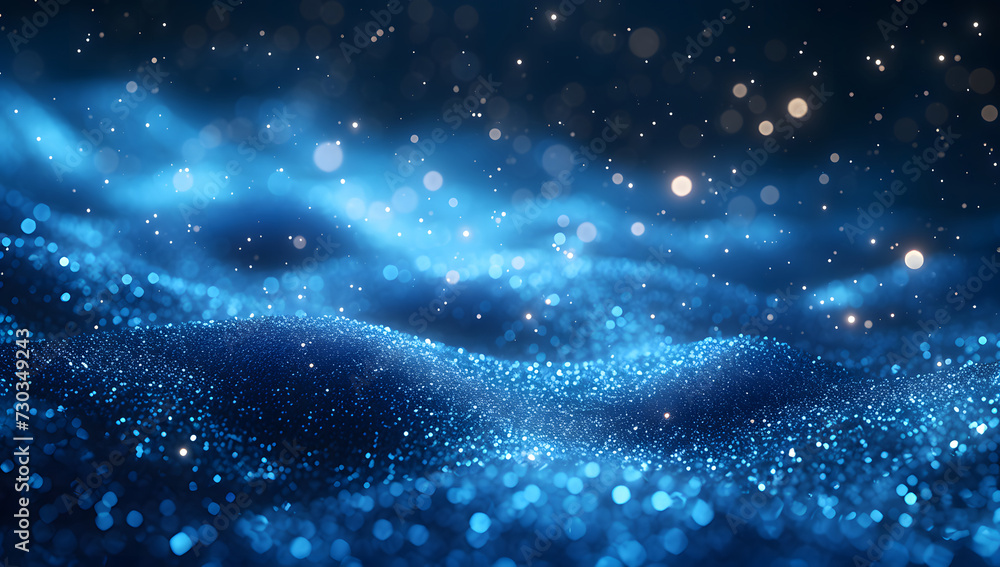The watermark will not be included on Wall mural.: A dark blue abstract background featuring a glow particle effect - the image includes abstract blue l