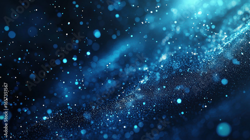 Wall mural : A dark blue background with particles or elements randomly drifting in space -