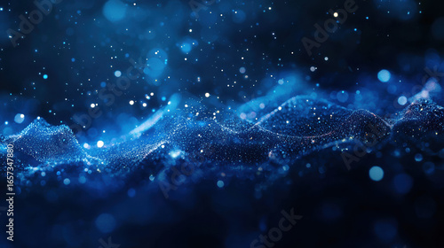 Wall mural : A dark blue background with particles or elements randomly drifting in space -