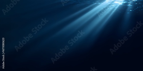 Wall mural : A dark blue background with rays of light shining down, creating an underwater effect -