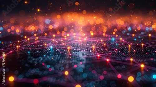 Wall mural a dark illustration of a technical system with colorful lines connecting different flow states - Wall murals Wall mural a dark illustration of a technical system with colorful lines connecting different flow states - Wall murals