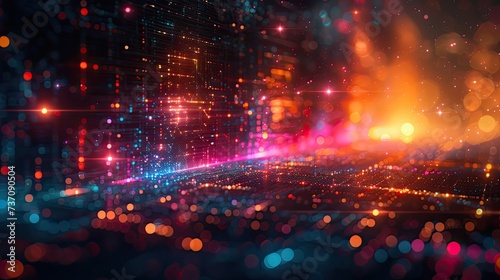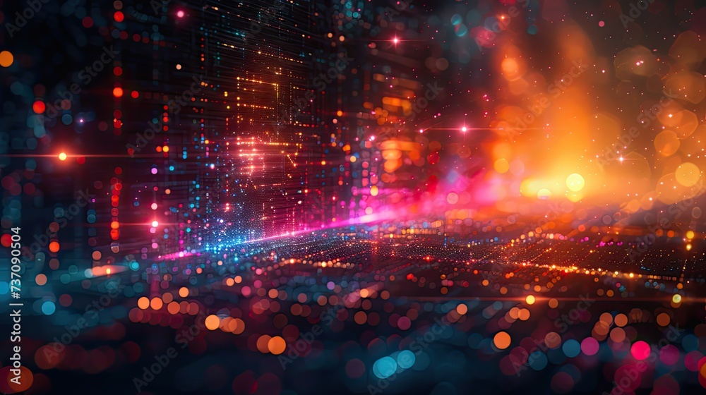 Wall mural a dark illustration of a technical system with colorful lines connecting different flow states - Wall murals Wall mural a dark illustration of a technical system with colorful lines connecting different flow states - Wall murals