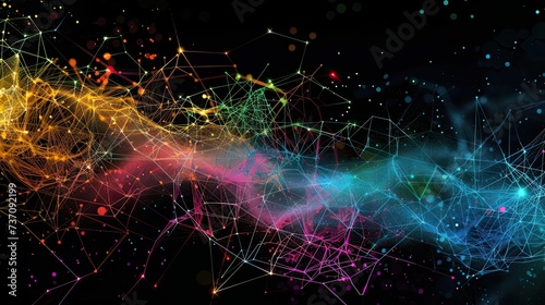 Wall mural a dark illustration of a technical system with colorful lines connecting different flow states - Wall murals Wall mural a dark illustration of a technical system with colorful lines connecting different flow states - Wall murals