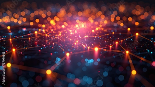 Wall mural a dark illustration of a technical system with colorful lines connecting different flow states - Wall murals Wall mural a dark illustration of a technical system with colorful lines connecting different flow states - Wall murals