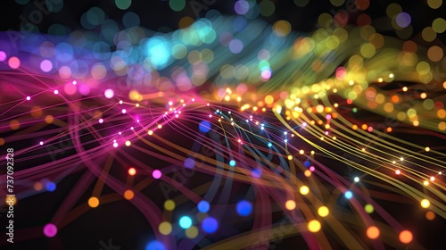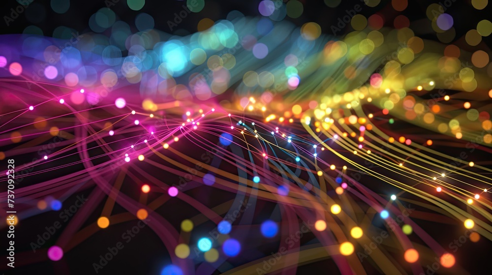 Wall mural a dark illustration of a technical system with colorful lines connecting different flow states - Wall murals Wall mural a dark illustration of a technical system with colorful lines connecting different flow states - Wall murals