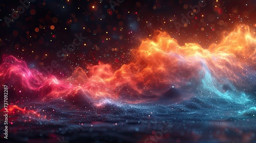 The watermark will not be included on Wall mural.: A dark illustration of a technical system with colorful lines connecting different flow states