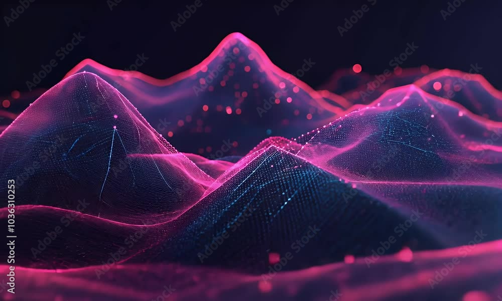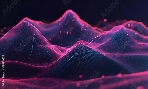 Wall mural a dark mountain range made of glowing data points and lines, representing the vastness of big tech's - Wall murals Wall mural a dark mountain range made of glowing data points and lines, representing the vastness of big tech's - Wall murals