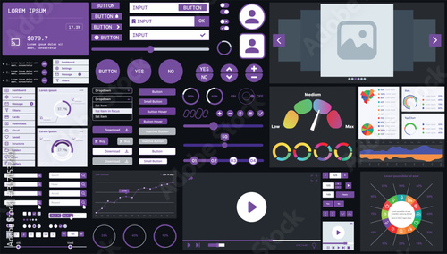 Wall mural a dark set of interface elements for web and mobile applications with modern icons, buttons, and gra