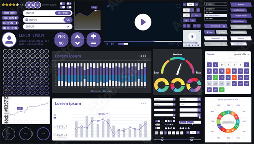 Wall mural a dark set of interface elements for web and mobile applications with modern icons, buttons, and gra