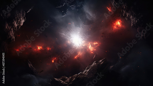 The watermark will not be included on Wall mural.: A dark space image with bright lights and bright explosion - , generative ai