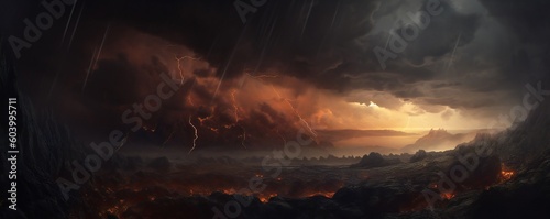 The watermark will not be included on Wall mural.: A dark storm background with sky, clouds and lightning generative ai