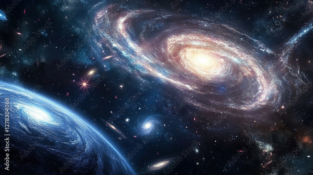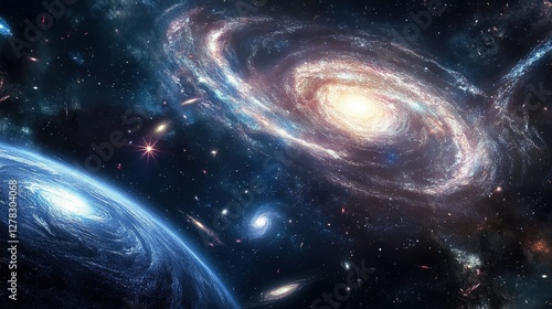 Wall mural a deep space view showing the vastness of the universe with multiple galaxies, nebulae, and star clu - Wall murals Wall mural a deep space view showing the vastness of the universe with multiple galaxies, nebulae, and star clu - Wall murals