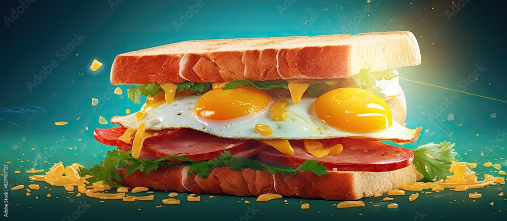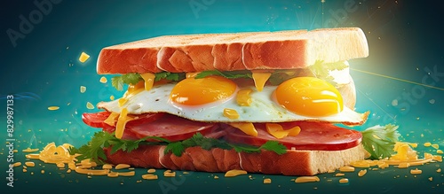 Wall mural a delicious sandwich made with spam and eggs. with copy space image. place for adding text or design