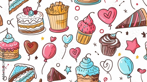 Wall mural a delightful array of hand drawn sweets and treats patterns - Wall murals Wall mural a delightful array of hand drawn sweets and treats patterns - Wall murals