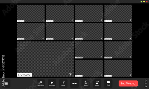 The watermark will not be included on Wall mural.: A deserted virtual meeting interface showcasing empty video streams and participant placeholders