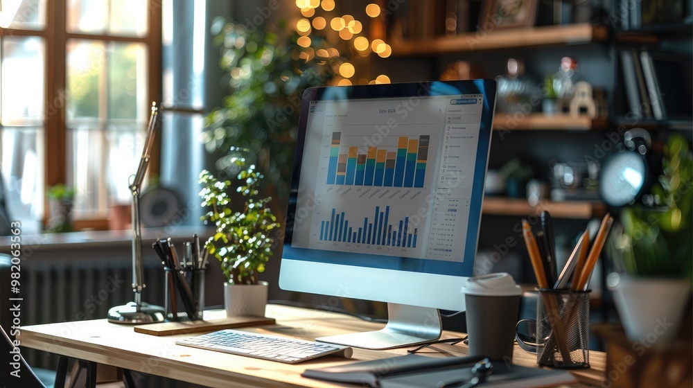 The watermark will not be included on Wall mural.: A desk visualization tools and computers to investigate real estate price - generative ai -