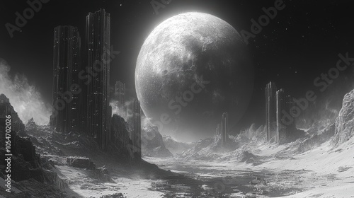 The watermark will not be included on Wall mural.: A desolate landscape with a large moon in the sky - generative ai