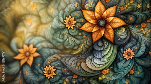 A detailed and intricate fractal pattern in shade backgroundWall mural