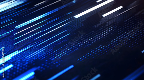 Wall mural : A digital abstract background featuring a geometric pattern of glowing blue and white lines on a dar
