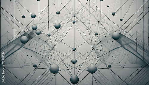Wall mural a digital art image of a grey and white geometric pattern with connecting lines and small circles