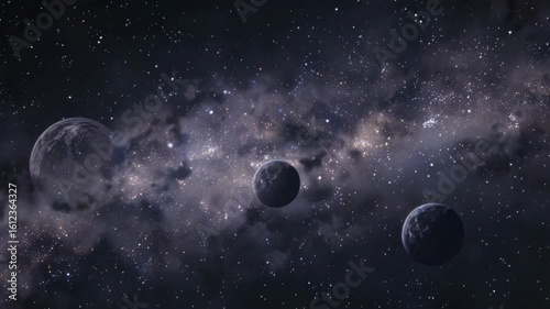 The watermark will not be included on Wall mural.: A digital artwork of a deep space view with multiple celestial bodies and stars -