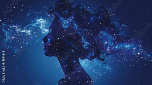 Wall mural a digital artwork of a woman's silhouette merging with a starry night sky, symbolizing the cosmos bl